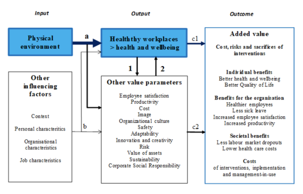Figur 1: Model for værdien af sunde arbejdspladser (Van der Voordt, 2021)