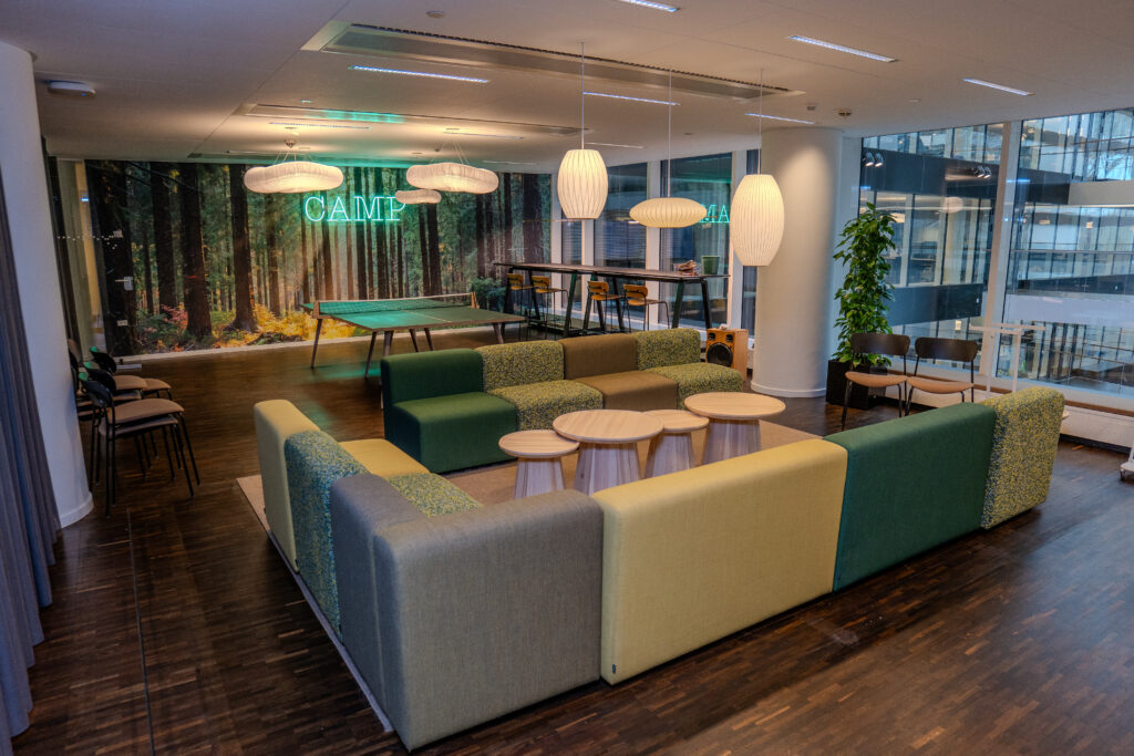 Og lægger man tallene sammen, så giver det knap 2 millioner kroner om året i sparede driftsomkostninger og indkommende lejeindtægter. Direkte ned på bundlinjen. Samtidig har huset fået plads til en lækker camp med bordfodbold, nye loungeområder og zoner til forskellige projekter.